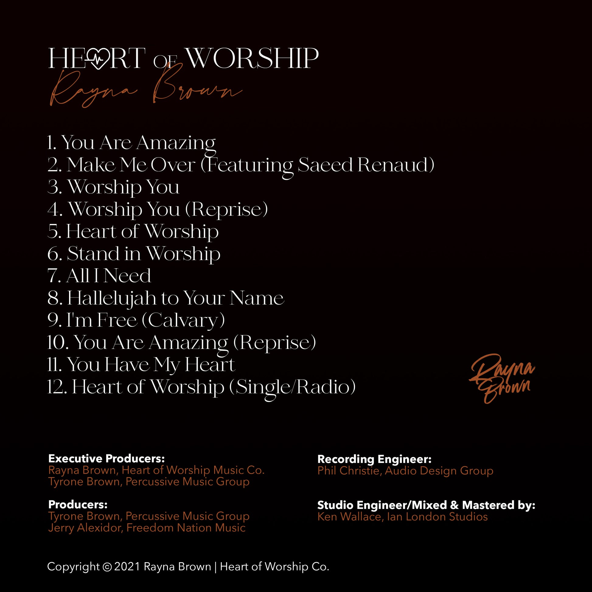 ALBUM: "Heart of Worship" (Recorded LIVE at Jesus is Lord Church) - Rayna Brown
